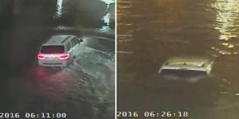 Rekaman yang mengejutkan itu dirilis oleh polisi Texas, Amerika Serikat, sebagai peringatan tentang bahaya mengemudi di tengah derasnya banjir di jalan raya.