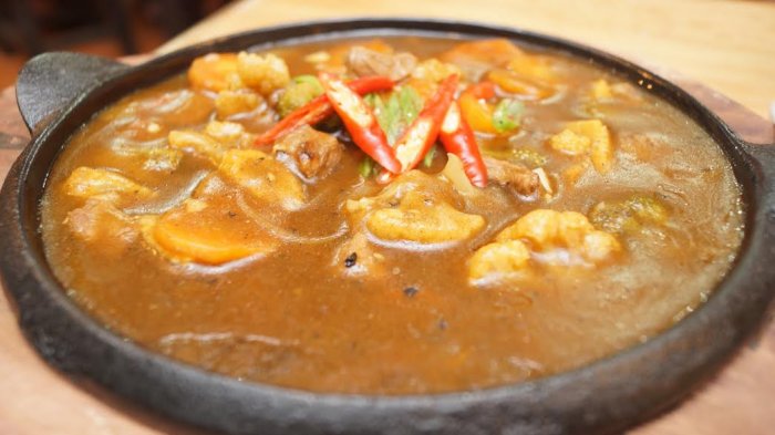 Bila Anda termasuk tipe orang yang tidak afdol memakan sesuatu tanpa nasi, menu ini sangat direkomendasikan. Kuah blackpepper yang kental dan gurih akan seimbang dengan nasi putih.