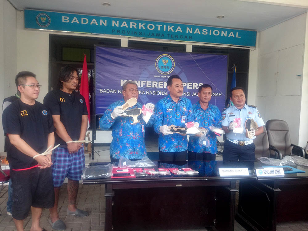 Dalam kesempatan itu, Kepala BNNP Jateng Brigjen Pol Tri Agus Heru mengungkapkan adanya modus baru peredaran narkoba yakni kurir mengantarkan "barang" dengan membawanya di rongga alas kaki.