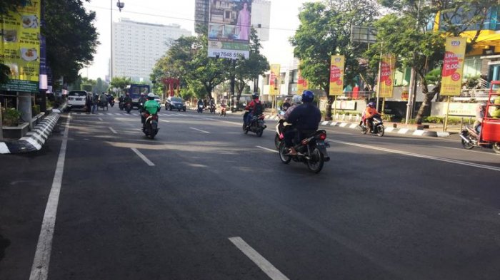 Suasana arus lalin di ujung Jalan Pandanaran Kota Semarang, Kamis (2/5/2018) pukul 7.45 WIB.