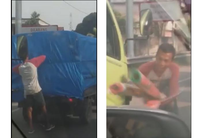 Pagi Tribun Jateng, di Jalan Empu Tantular depan pabrik perajutan, perasaan ada aja akalnya. Dulu tangki dibongkar isinya. Kemarin truk dibongkar kardus-kardusnya. Takut saya kalau bajing loncat. Terima kasih mohon perhatiannya.