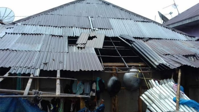 Sebanyak enam unit rumah dan sebuah fasilitas umum berupa musala mengalami rusak ringan akibat bencana itu. Kerusakan rata-rata pada bagian atap yang beterbangan karena tersapu angin.