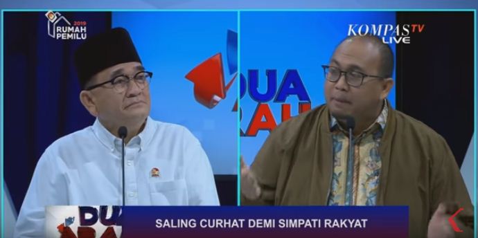 Ruhut Sitompul melakukan sesi debat panas dengan Timses Prabowo Subianto-Sandiaga Uno, Andre Rosiade.