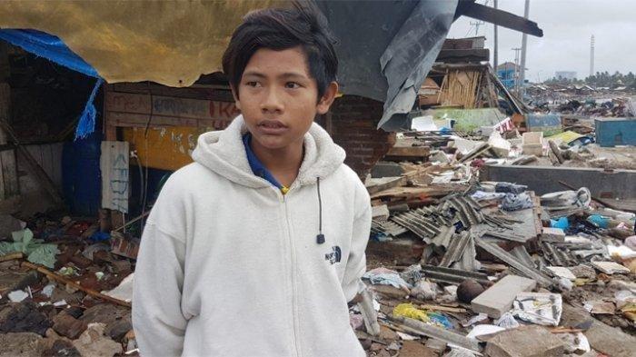 Asep (15) dijumpai TribunJakarta.com usai meninjau kondisi rumahnya di kawasan Pelelangan Ikan Labuan, Pandeglang, Banten, pasca diterjang tsunami Selat Sunda. (TRIBUNJAKATA.COM/DWI PUTRA KESUMA)