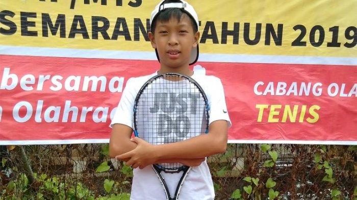 TRIBUNJATENG.COM, SEMARANG - Petenis Brandon Marciano Lehman (11) menjuarai cabang olahraga tenis tingkat SD Popda (Pekan Olahraga Daerah) Kota Semarang 2019.