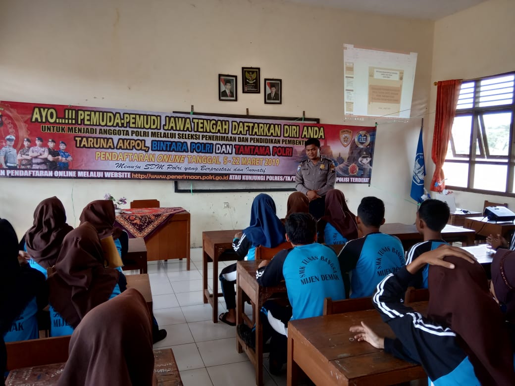 Polsek Mijen Demak menggelar sosialisasi penerimaan calon anggota Polri tahun 2019 di SMK Tunas Bangsa Mijen Kecamatan Mijen Kabupaten Demak