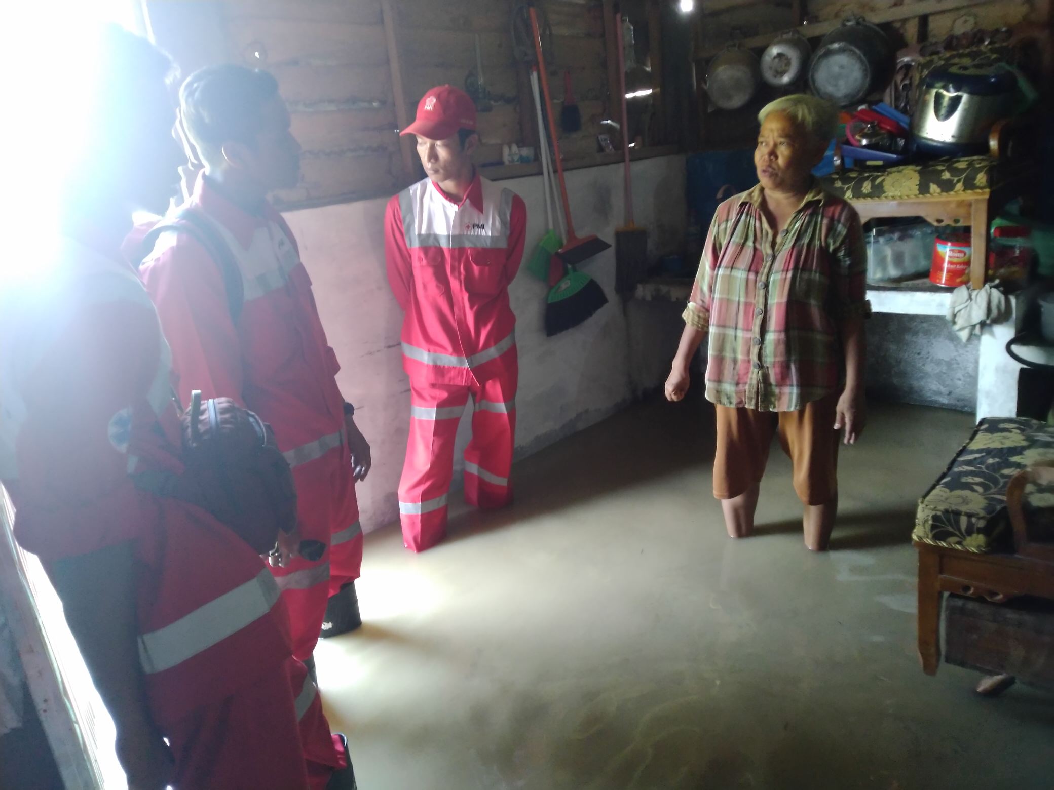 "Sejak pagi sampai saat ini ketinggian air banjir masih sama. Saya enggan mengungsi karena saya masih bisa beraktivitas sehari - hari meskipun sedikit terhambat,"ujarnya ditemui di rumahnya, Senin (8/4/2019).