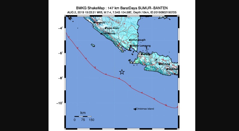 TRIBUNJATENG.COM, JAKARTA - Wilayah Samudera Hindia Selatan Jawa diguncang gempa tektonik, Jumat (2/8/2019) pukul 19.03.21 WIB.
