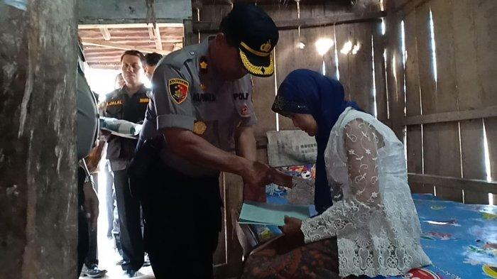 TRIBUNJATENG.COM, UNGARAN - Polsek Ungaran Polres Semarang Polda Jawa Tengah melaksanakan kegiatan Jumat Berbagi kepada warga kurang mampu di Desa Kawengen Kecamatan Ungaran Timur tepatnya di rumah Kasemi (80), Jumat (27/09/2019).