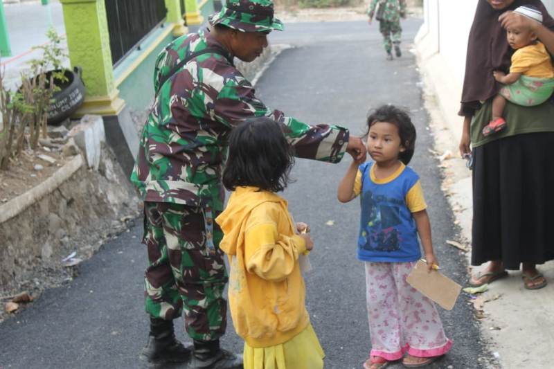 Potret kedekatan anggota Satgas TMMD Reguler 106 Kodim 0703 Cilacap, selama bertugas di Desa Cilibang, Kecamatan Jeruklegi dengan anak-anak