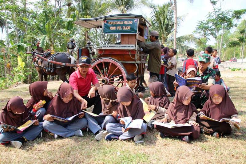 Andong Perpustakaan Keliling Kodim Cilacap Jadi Favorit Pelajar SD Cilibang