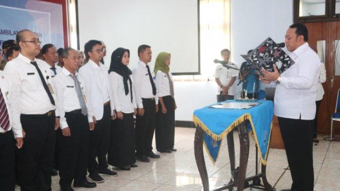TRIBUNJATENG.COM, TEGAL - Wali Kota Tegal, Dedy Yon Supriyono, melantik 27 Pegawai Negeri Sipil (PNS) di lingkungan Pemerintah Kota Tegal sebagai pemegang Jabatan Fungsional Tertentu (JFT) di Ruang Rapat Setda lantai II Kota Tegal, Jumat (13/12/2019).