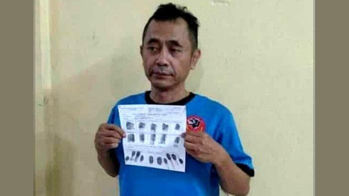Dari foto yang diterima Tribun, Rabu (29/1), tampak Rangga berpakaian tahanan warna biru sedang mengacungkan kertas sidik jari.