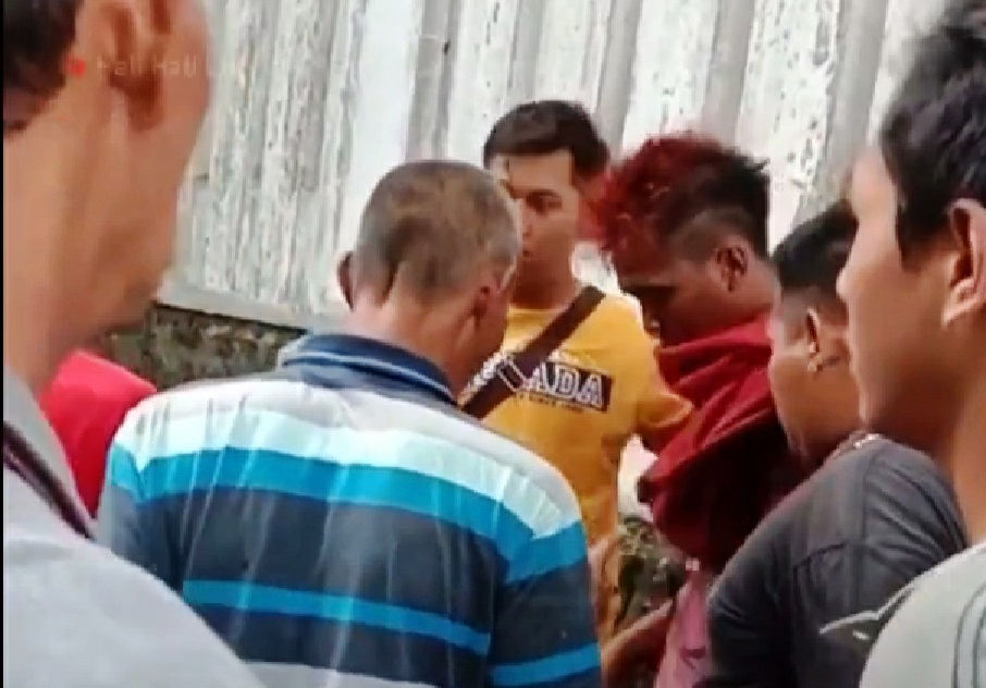 Puluhan warga tampak berkerumun, mata mereka tertuju pada satu pemuda berambut merah yang diduga mencuri handphone.