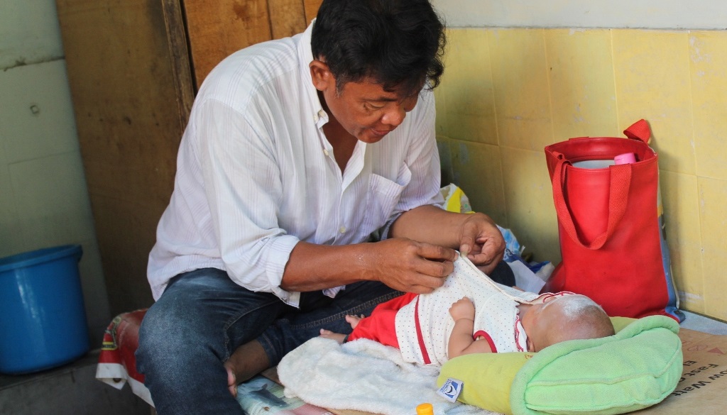 Keteguhan sang ayah untuk mengasuh bayinya yang berusia 3,5 bulan sejak ibundanya meninggal patut diacungi jempol.