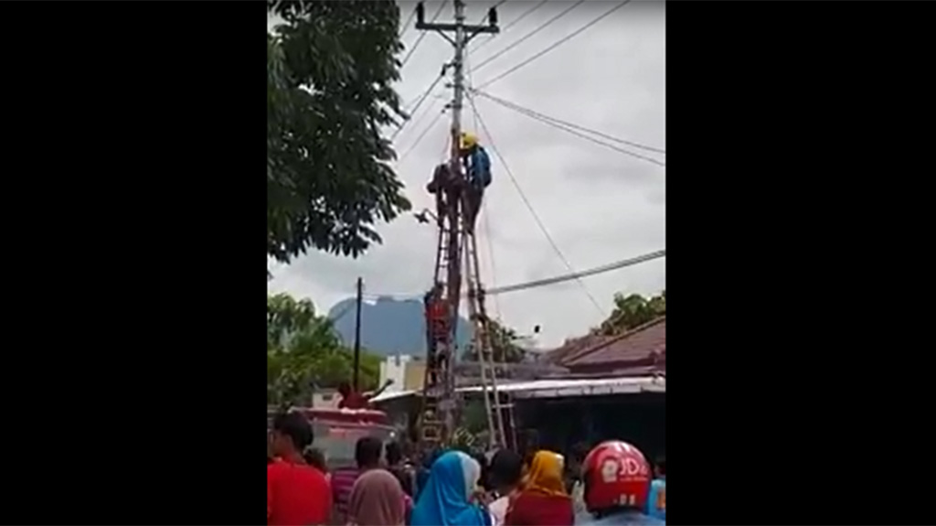 Tubuhnya lemas tak berdaya di atas tiang listrik.