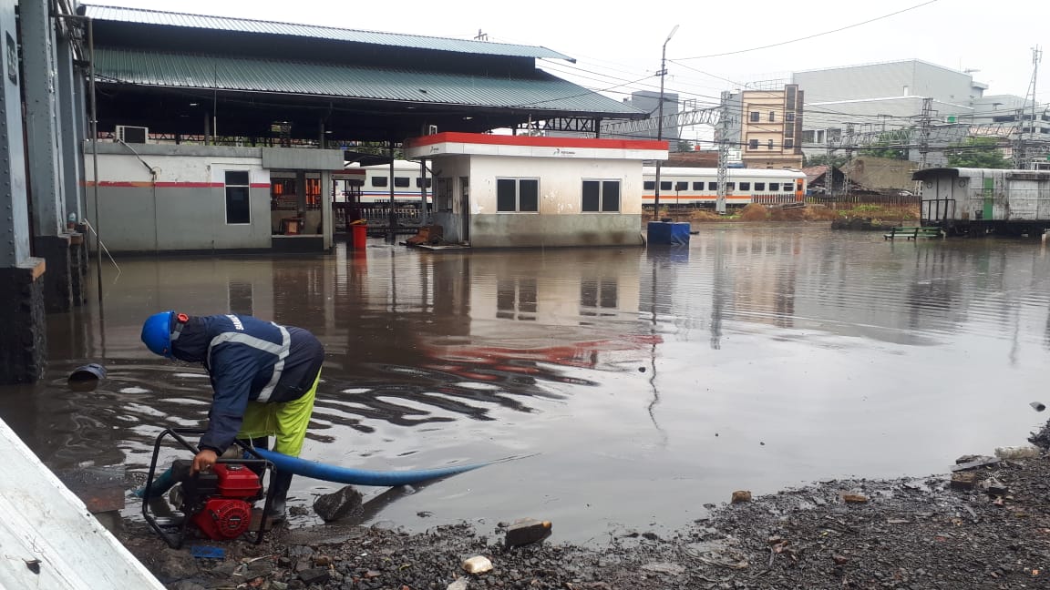 Beberapa titik stasiun dan perlintasan KA terimbas banjir.