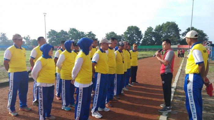 Sebelum test dimulai Kapolres Kebumen mengapelkan para peserta test di stadion Candradimuka Kebumen.