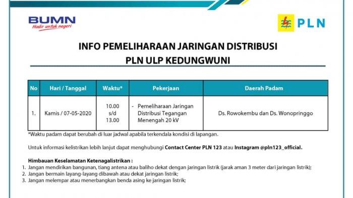 PELANGGAN PLN yang terhormat, dalam rangka meningkatkan pelayanan dan mengamankan pasokan listrik kepada pelanggan, maka dengan ini kami sampaikan informasi Pemeliharaan Jaringan listrik PLN ULP Kedungwuni:
