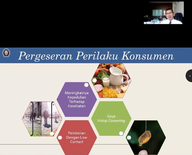 Dekan Fakultas Teknik Universitas Diponegoro, Agung Wibowo, selaku satu diantara pembicara yang turut hadir dalam acara Webinar tersebut menyampaikan adanya pandemi covid-19 menyebabkan pola perubahan konsumsi masyarakat, diantaranya seperti banyaknya masyarakat yang kini senang berbagi dan lebih sering berbelanja online.