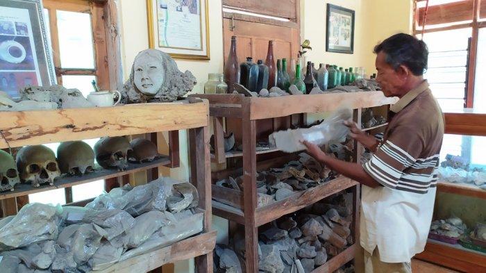 Di rumahnya, 4.000 fosil dan beberapa benda kuno yang ia kumpulkan sejak 1975 tertata rapi di dalam etalase kaca yang ia peroleh dari Pemkab Sragen.
