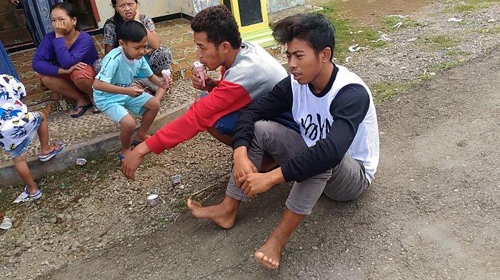 Nurkholis (23) (kaus putih hitam), warga desa Slatri Banjarnegara sudah pulih usai tersambar petir
