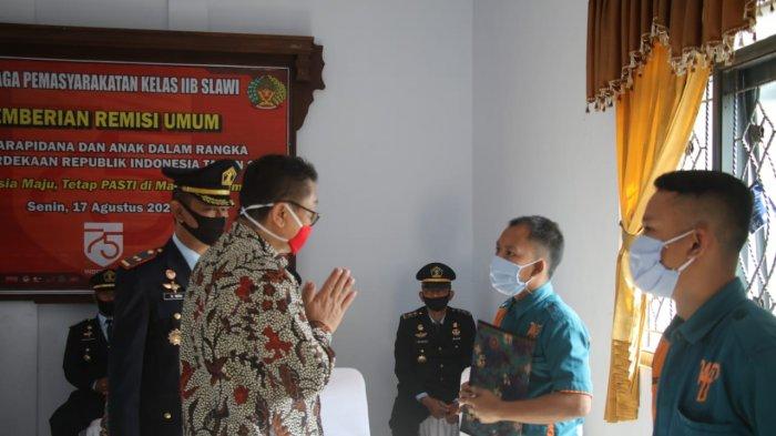 TRIBUNJATENG.COM, SLAWI - Sebanyak 210 narapidana dari 320 orang warga binaan di Lembaga Pemasyarakatan (Lapas) Kelas IIB Tegalandong, Kecamatan Slawi, Kabupaten Tegal, mendapat remisi umum peringatan Hari Ulang Tahun ke-75 Kemerdekaan Republik Indonesia.