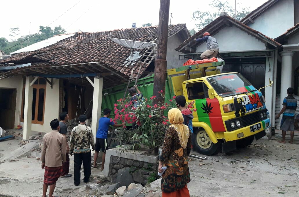 Truk Bawa Beras Warga Miskin Kecelakaan Tabrak Rumah di Tegal