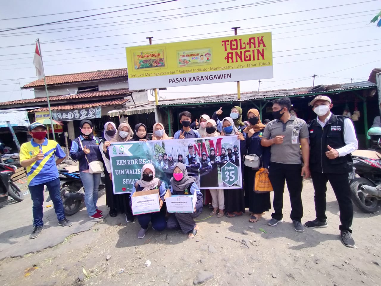 Untuk menjalankan program kerjanya KKN UIN Walisongo juga menggandeng team satgas covid'19 dan petugas pasar dalam pendampingan pembagian masker gratis.