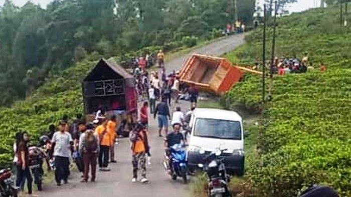 Namun sebelum tiba di kawasan Candi Cetho, truk mengalami kecelakaan tunggal di Desa Gumeng Kecamatan Jenawi.