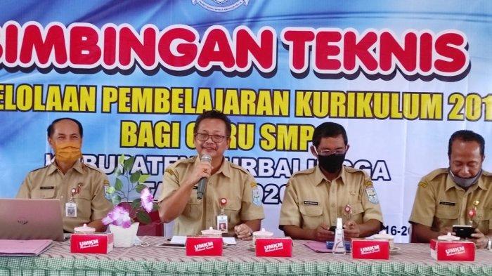 TRIBUNBANYUMAS.COM, PURBALINGGA - Bimbingan Teknis (Bimtek) Pengelolaan Pembelajaran Kurikulum 2013 bagi Guru SMP se Purbalingga dilaksanakan dengan protokol kesehatan.