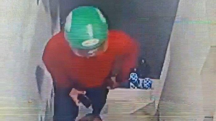 Sementara itu, dari rekaman CCTV di TKP memperlihatkan seorang pria mengenakan jaket merah menaiki tangga menggunakan helm ojek online.
