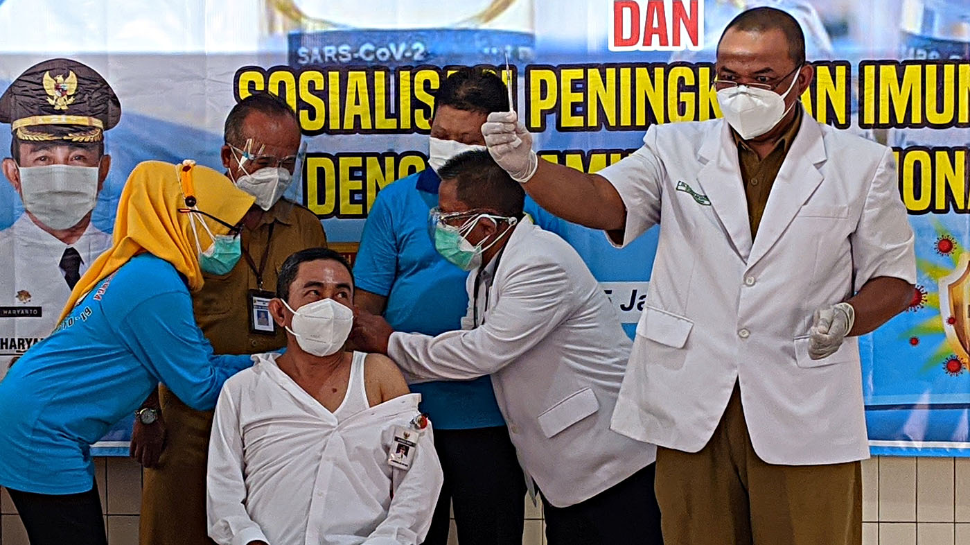 Penyuntikan vaksin sinovac dilakukan oleh dr Slamet Sutaryo.