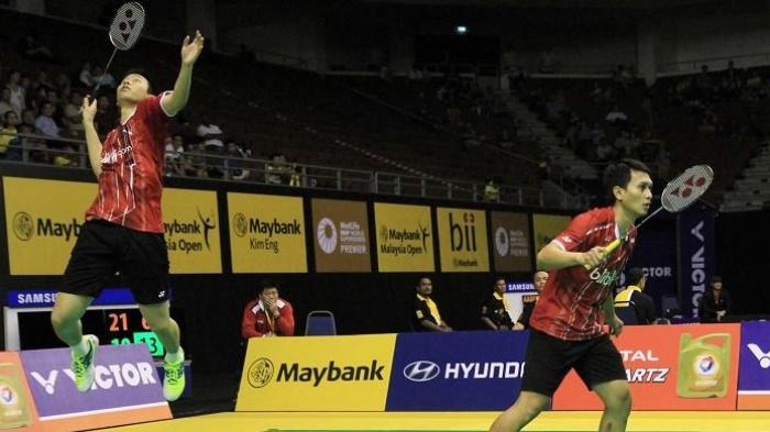TRIBUNJATENG.COM - Hasil kurang memuaskan didapat oleh ganda putra Indonesia, Mohammad Ahsan/ Hendra Setiawan di BWF World Tour Finals 2020, Minggu (31/1/2021).