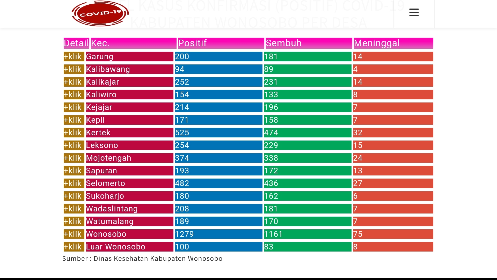 Dari total 4.869 pasien positif corona di Kabupaten Wonosobo, berikut rincian per kecamatan :