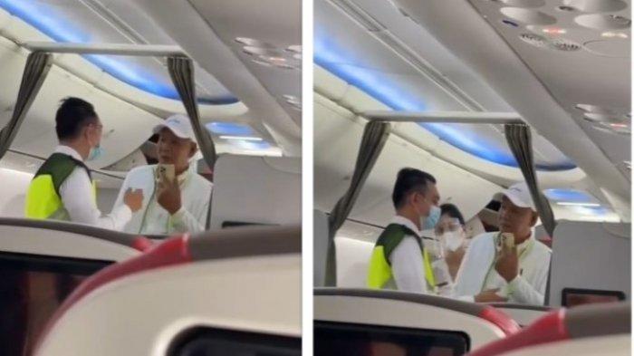 Video seorang penumpang marah-marah kepada petugas di kabin pesawat viral di media sosial.