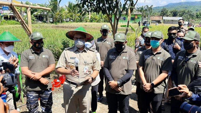 TRIBUNBANYUMAS.COM, CILACAP - Gubernur DKI Jakarta, Anies Baswedan menghadiri panen raya padi di Desa Jenang, Kecamatan Majenang, Kabupaten Cilacap, pada Jumat (16/4/2021).