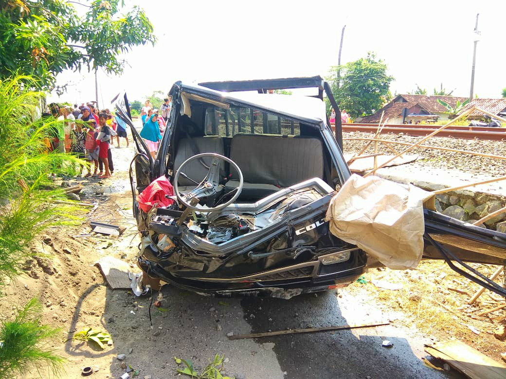 Kecelakaan maut antara mobil pick up dan kereta di wilayah Desa Iser Kecamatan Petarukan Pemalang, hebohkan warga.