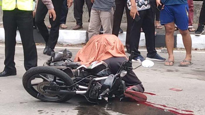 Seorang pengendara sepeda motor Megapro tewas setelah menabrak bak truk Fuso di Jalan Perintis Kemerdekaan, Kamis (29/4/2021).
