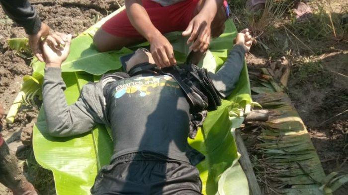 Seorang mayat berjenis kelamin laki-laki tergeletak kaku di area pesawahan Desa Tambakroto, Kecamatan Sayung, Kabupaten Demak, Senin, (10/5/2021).