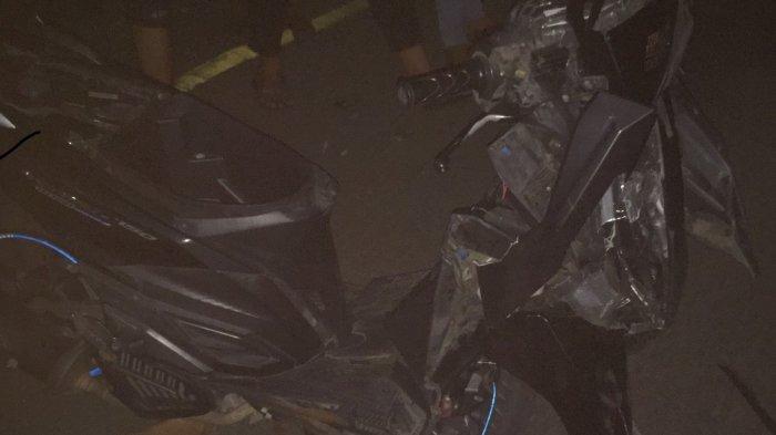 Motor Vario berpelat H3115MH yang dikendarai korban tampak ringsek parah hampir di semua bagian, terutama bagian depan.