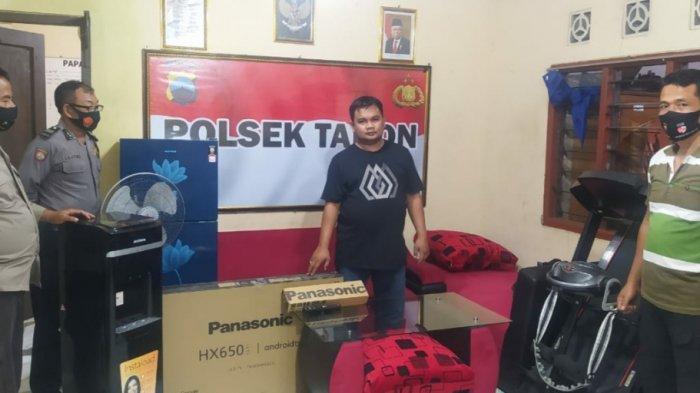 "Kulkas, sispenser, TV 42 inch, almari kaca, kipas angin, alat fitnes masing-masing satu buah, buku tabungan dan uang tunai Rp 13.000.000," katanya.