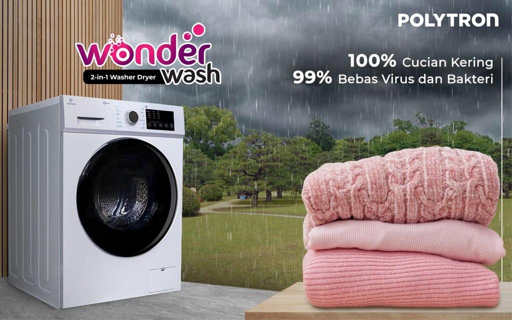 Mencuci sampai kering dengan Polytron Wonderwash 2-in-1, diklaim dapat menghemat listrik dan air.