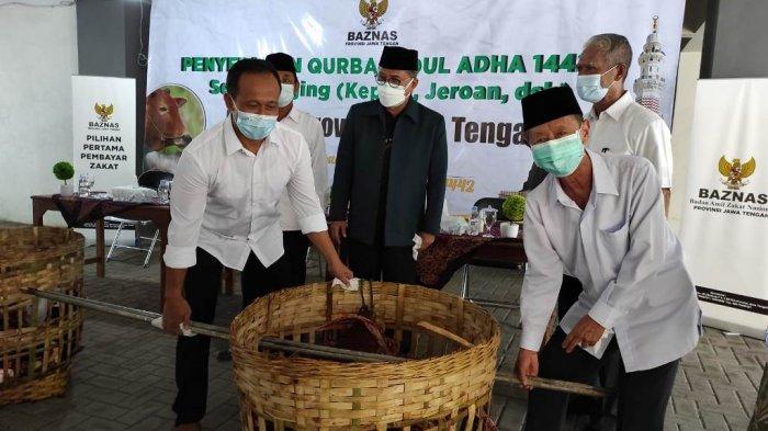 TRIBUNJATENG.COM, SEMARANG - Badan Amil Zakat Nasional (Baznas) Jawa Tengah membagikan daging kurban pada warga terdampak pandemi terutama yang terpapar covid-19.