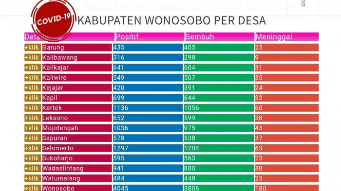 Dari total 14,377 kasus virus corona wonosobo, 264 pasien positif masih dirawat, 13.431 pasien covid-19 dinyatakan sembuh, dan 681 kasus meninggal .