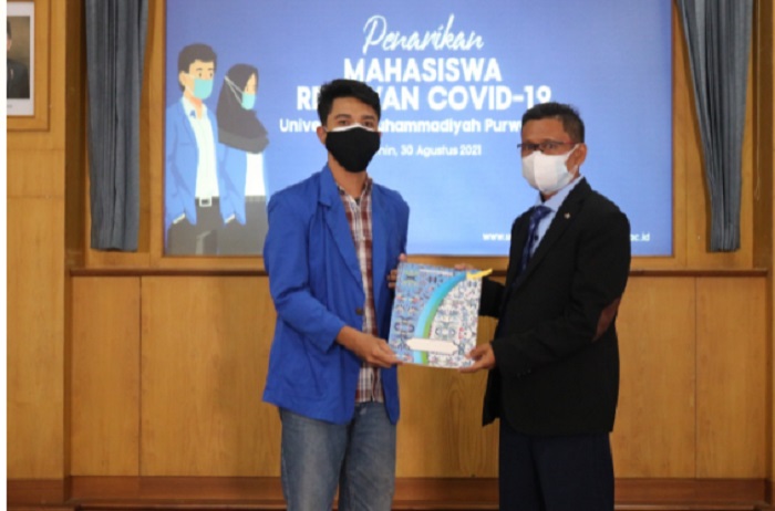 Penghargaan tersebut, diserahkan Wakil Rektor I Bdiang Akademik dan Kerjasama Ir Aman Suyadi MP, kepada mahasiswa KKN Relawan Covid-19 UMP dalam acara penarikan mahasiswa relawan Covid-19 di Gedung AK Anshori, Senin (30/8/2021).