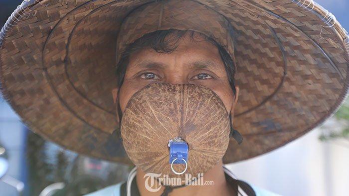 Ujare Budiasa, yen nganggo masker saka bathok klapa dheweke luwih kepenak nalika ngomong lan nyemprit sempritan.