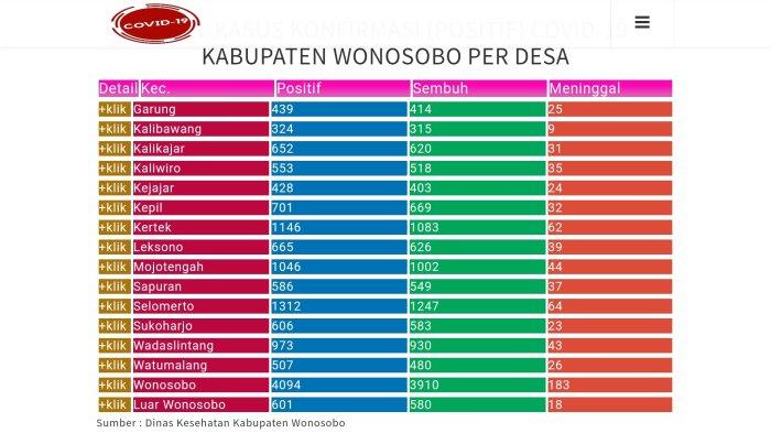 Dari total 14,633 pasien positif corona di Kabupaten Wonosobo, berikut rincian per kecamatan :