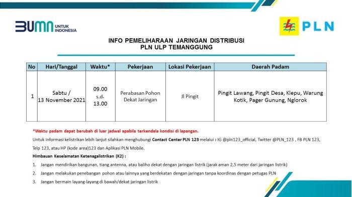 Info Pemeliharaan Jaringan Listrik PLN ULP Temanggung Sabtu 13 November 2021