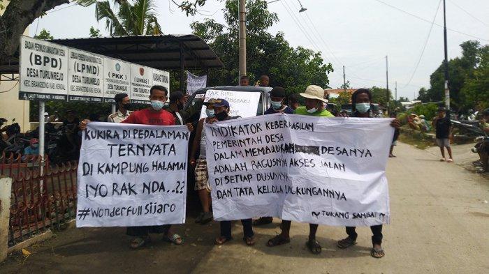 Puluhan warga Dusun Sijaro, Desa Turunrejo menggelar aksi unjukrasa di depan kantor balaidesa setempat, Jumat (3/12/2021).